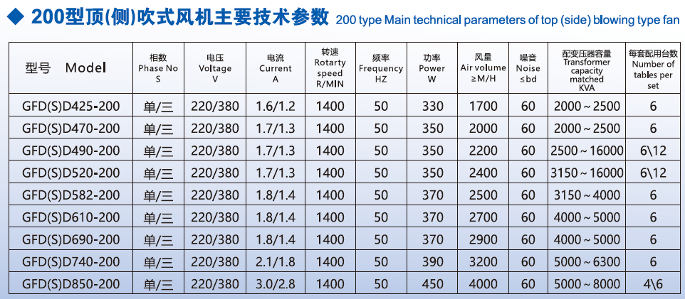 6.200 type top-blowing type fan