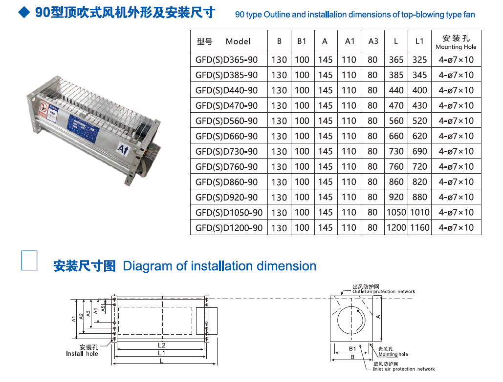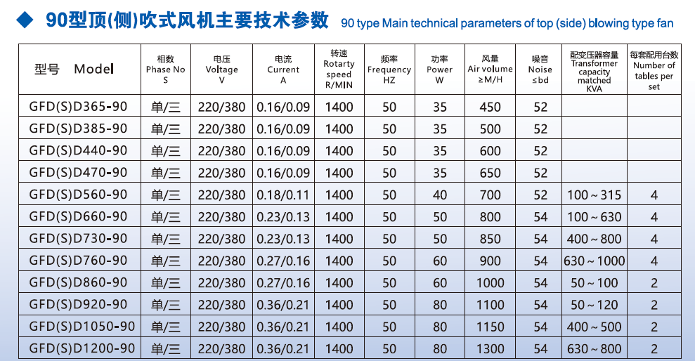 1.90 type top-blowing type fan